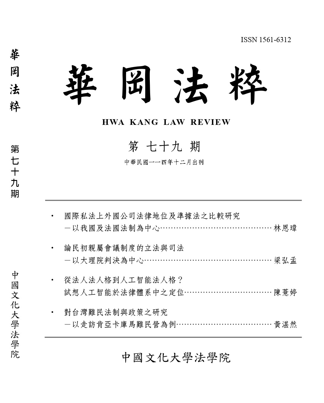 2025-12-15 12:40:59華岡法粹最新第78期已上線,快來看看本期有哪些新文章吧!國家圖書館|法源資訊網 | 月旦知識庫